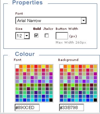 左側のメニューで文字の種類、大きさ、色、背景の色などを設定します。 右側のボタンから、好きなスタイルを選んでクリック。 するとプレビューで、自動的に作成されます。 省ける作業はどんどん省く。 Web2.0の良いところですね。どんどん利用しましょう。