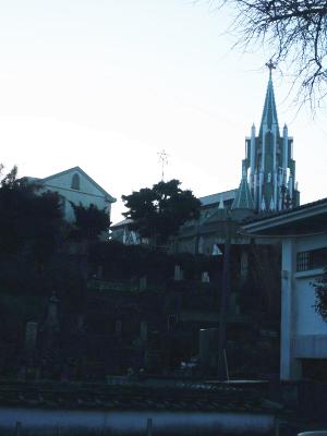 暗くてよく見えず申し訳ないのだけれど、手前にあるのがお墓。奥がザビエル教会。