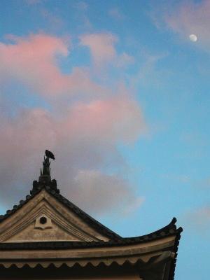 お城のてっぺんに、よくある鳥の像?が飾ってあると思ったら、本物の鳶だった。