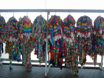 平和公園に寄贈されたたくさんの千羽鶴。一羽一羽が未来を背負っている!