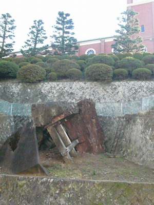 下は原爆で全壊した浦上天主堂の鐘楼。かなり大きく、当時は東洋一だった大聖堂の姿が偲ばれる。